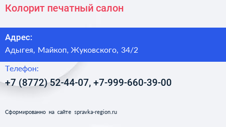 Колорит, печатный салон по адресу Адыгея, Майкоп, Жуковского, 34/2 в дальнейшем Организация, размещена в следующих категориях: