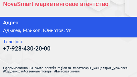 NovaSmart, маркетинговое агентство по адресу Адыгея, Майкоп, Юннатов, 9г в дальнейшем Организация, размещена в следующих категориях: