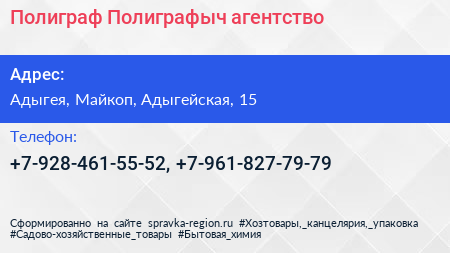 Полиграф Полиграфыч, агентство по адресу Адыгея, Майкоп, Адыгейская, 15 в дальнейшем Организация, размещена в следующих категориях: