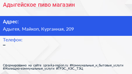 Адыгейское пиво, магазин по адресу Адыгея, Майкоп, Курганная, 209 в дальнейшем Организация, размещена в следующих категориях: