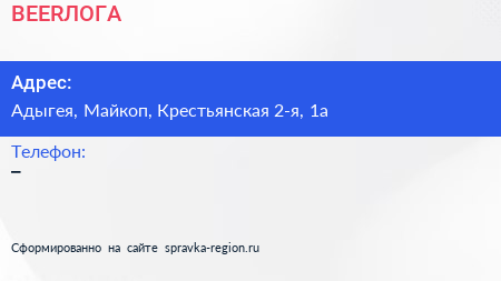 BEERЛОГА по адресу Адыгея, Майкоп, Крестьянская 2-я, 1а в дальнейшем Организация, размещена в следующих категориях: