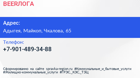 BEERЛОГА по адресу Адыгея, Майкоп, Чкалова, 65 в дальнейшем Организация, размещена в следующих категориях: