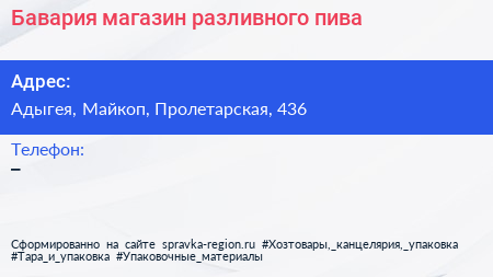 Бавария, магазин разливного пива по адресу Адыгея, Майкоп, Пролетарская, 436 в дальнейшем Организация, размещена в следующих категориях: