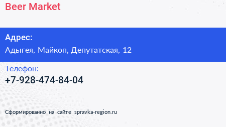 Beer Market по адресу Адыгея, Майкоп, Депутатская, 12 в дальнейшем Организация, размещена в следующих категориях: