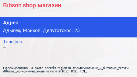 Bibson shop, магазин по адресу Адыгея, Майкоп, Депутатская, 25 в дальнейшем Организация, размещена в следующих категориях: