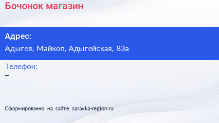 Бочонок, магазин по адресу Адыгея, Майкоп, Адыгейская, 83а в дальнейшем Организация, размещена в следующих категориях: