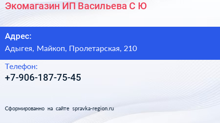 Экомагазин, ИП Васильева С.Ю. по адресу Адыгея, Майкоп, Пролетарская, 210 в дальнейшем Организация, размещена в следующих категориях: