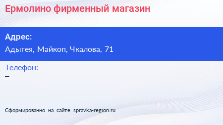 Ермолино, фирменный магазин по адресу Адыгея, Майкоп, Чкалова, 71 в дальнейшем Организация, размещена в следующих категориях: