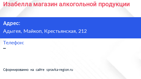 Изабелла, магазин алкогольной продукции по адресу Адыгея, Майкоп, Крестьянская, 212 в дальнейшем Организация, размещена в следующих категориях:
