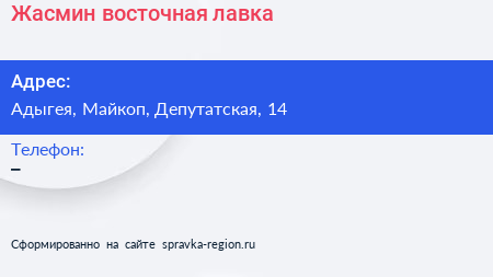 Жасмин, восточная лавка по адресу Адыгея, Майкоп, Депутатская, 14 в дальнейшем Организация, размещена в следующих категориях: