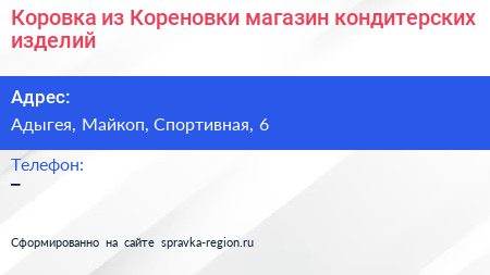 Коровка из Кореновки, магазин кондитерских изделий по адресу Адыгея, Майкоп, Спортивная, 6 в дальнейшем Организация, размещена в следующих категориях: