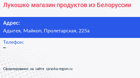 Лукошко, магазин продуктов из Белоруссии по адресу Адыгея, Майкоп, Пролетарская, 225а в дальнейшем Организация, размещена в следующих категориях: