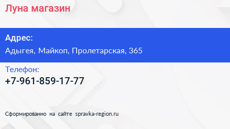Луна, магазин по адресу Адыгея, Майкоп, Пролетарская, 365 в дальнейшем Организация, размещена в следующих категориях: