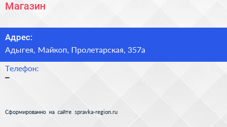 Магазин по адресу Адыгея, Майкоп, Пролетарская, 357а в дальнейшем Организация, размещена в следующих категориях: