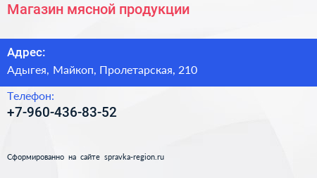 Магазин мясной продукции по адресу Адыгея, Майкоп, Пролетарская, 210 в дальнейшем Организация, размещена в следующих категориях: