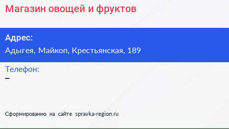 Магазин овощей и фруктов по адресу Адыгея, Майкоп, Крестьянская, 189 в дальнейшем Организация, размещена в следующих категориях: