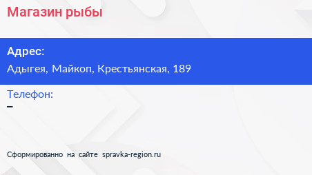 Магазин рыбы по адресу Адыгея, Майкоп, Крестьянская, 189 в дальнейшем Организация, размещена в следующих категориях: