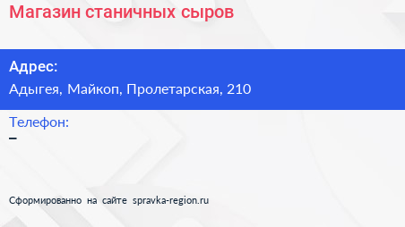 Магазин станичных сыров по адресу Адыгея, Майкоп, Пролетарская, 210 в дальнейшем Организация, размещена в следующих категориях: