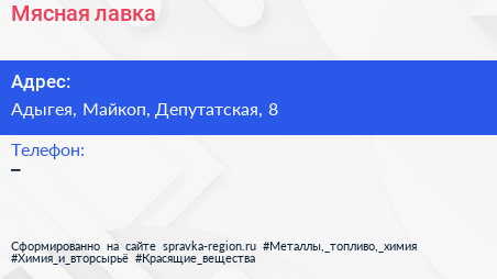 Мясная лавка по адресу Адыгея, Майкоп, Депутатская, 8 в дальнейшем Организация, размещена в следующих категориях: