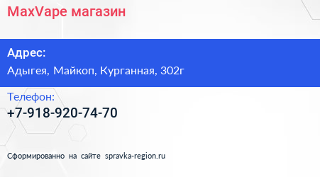 MaxVape, магазин по адресу Адыгея, Майкоп, Курганная, 302г в дальнейшем Организация, размещена в следующих категориях: