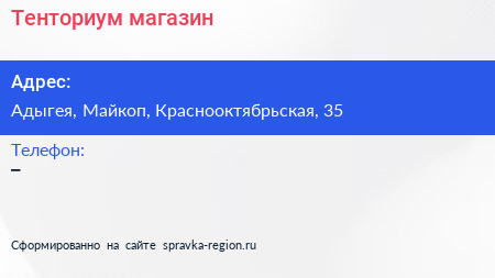 Тенториум, магазин по адресу Адыгея, Майкоп, Краснооктябрьская, 35 в дальнейшем Организация, размещена в следующих категориях:
