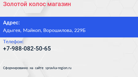 Золотой колос, магазин по адресу Адыгея, Майкоп, Ворошилова, 229Б в дальнейшем Организация, размещена в следующих категориях:
