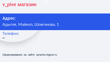 v_pive, магазин по адресу Адыгея, Майкоп, Шовгенова, 1 в дальнейшем Организация, размещена в следующих категориях: