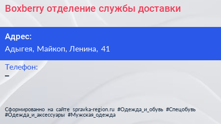 Boxberry, отделение службы доставки по адресу Адыгея, Майкоп, Ленина, 41 в дальнейшем Организация, размещена в следующих категориях: