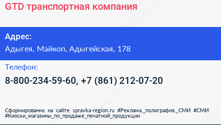 GTD, транспортная компания по адресу Адыгея, Майкоп, Адыгейская, 178 в дальнейшем Организация, размещена в следующих категориях: