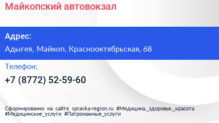 Майкопский автовокзал по адресу Адыгея, Майкоп, Краснооктябрьская, 68 в дальнейшем Организация, размещена в следующих категориях: