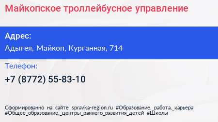 Майкопское троллейбусное управление по адресу Адыгея, Майкоп, Курганная, 714 в дальнейшем Организация, размещена в следующих категориях: