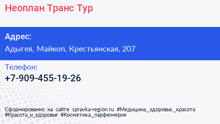 Неоплан Транс-Тур по адресу Адыгея, Майкоп, Крестьянская, 207 в дальнейшем Организация, размещена в следующих категориях: