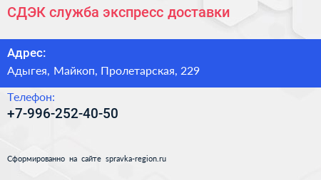 СДЭК, служба экспресс-доставки по адресу Адыгея, Майкоп, Пролетарская, 229 в дальнейшем Организация, размещена в следующих категориях: