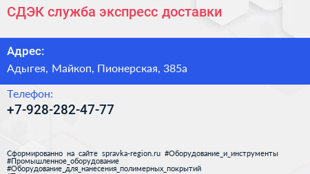 СДЭК, служба экспресс-доставки по адресу Адыгея, Майкоп, Пионерская, 385а в дальнейшем Организация, размещена в следующих категориях: