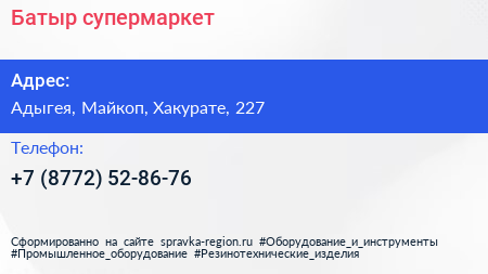 Батыр, супермаркет по адресу Адыгея, Майкоп, Хакурате, 227 в дальнейшем Организация, размещена в следующих категориях: