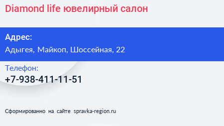 Diamond life, ювелирный салон по адресу Адыгея, Майкоп, Шоссейная, 22 в дальнейшем Организация, размещена в следующих категориях: