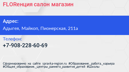 FLORенция, салон-магазин по адресу Адыгея, Майкоп, Пионерская, 211а в дальнейшем Организация, размещена в следующих категориях: