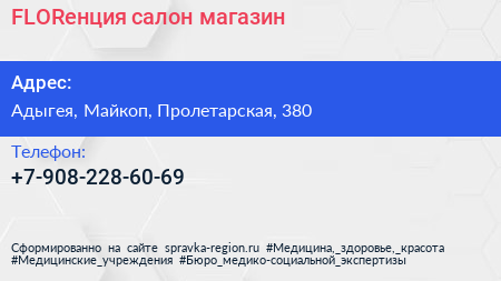 FLORенция, салон-магазин по адресу Адыгея, Майкоп, Пролетарская, 380 в дальнейшем Организация, размещена в следующих категориях: