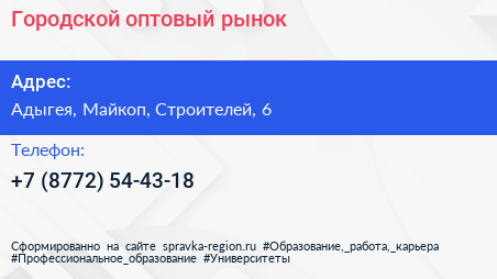Городской оптовый рынок по адресу Адыгея, Майкоп, Строителей, 6 в дальнейшем Организация, размещена в следующих категориях: