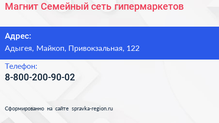 Магнит Семейный, сеть гипермаркетов по адресу Адыгея, Майкоп, Привокзальная, 122 в дальнейшем Организация, размещена в следующих категориях: