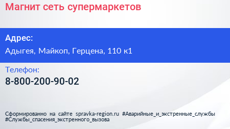 Магнит, сеть супермаркетов по адресу Адыгея, Майкоп, Герцена, 110 к1 в дальнейшем Организация, размещена в следующих категориях: