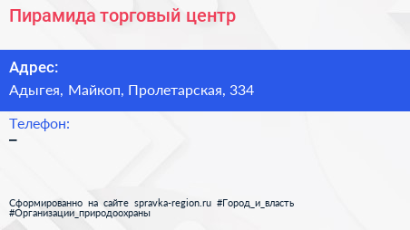 Пирамида, торговый центр по адресу Адыгея, Майкоп, Пролетарская, 334 в дальнейшем Организация, размещена в следующих категориях: