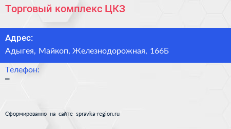 Торговый комплекс ЦКЗ по адресу Адыгея, Майкоп, Железнодорожная, 166Б в дальнейшем Организация, размещена в следующих категориях: