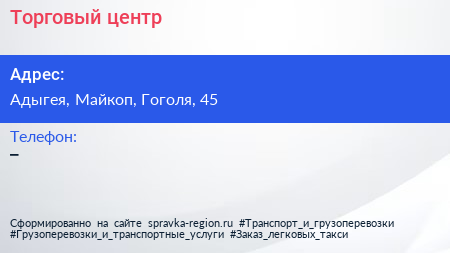 Торговый центр по адресу Адыгея, Майкоп, Гоголя, 45 в дальнейшем Организация, размещена в следующих категориях: