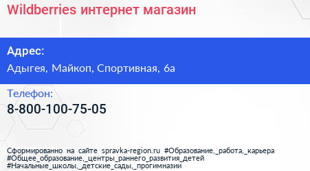 Wildberries, интернет-магазин по адресу Адыгея, Майкоп, Спортивная, 6а в дальнейшем Организация, размещена в следующих категориях: