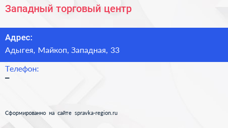 Западный, торговый центр по адресу Адыгея, Майкоп, Западная, 33 в дальнейшем Организация, размещена в следующих категориях: