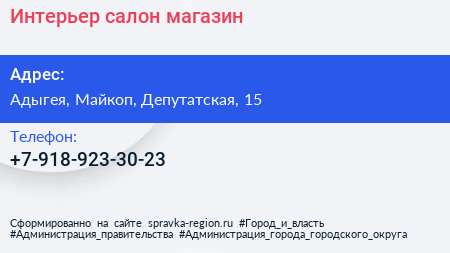 Интерьер, салон-магазин по адресу Адыгея, Майкоп, Депутатская, 15 в дальнейшем Организация, размещена в следующих категориях: