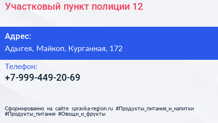 Участковый пункт полиции №12 по адресу Адыгея, Майкоп, Курганная, 172 в дальнейшем Организация, размещена в следующих категориях: