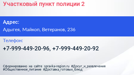 Участковый пункт полиции №2 по адресу Адыгея, Майкоп, Ветеранов, 236 в дальнейшем Организация, размещена в следующих категориях: