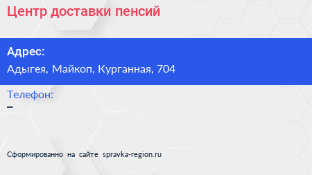 Центр доставки пенсий по адресу Адыгея, Майкоп, Курганная, 704 в дальнейшем Организация, размещена в следующих категориях: